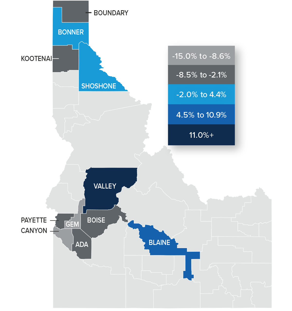 The following analysis of select counties of the Idaho real estate market is provided by Windermere Real Estate Chief Economist Matthew Gardner. We hope that this information may assist you with making better-informed real estate decisions. For further information about the housing market in your area, please don’t hesitate to contact your Windermere Real Estate agent.