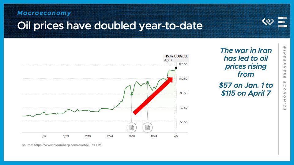 The first number to know this month: $115. That was the level that price of a barrel of oil reached on April 7, and it happens to be exactly double the price of oil at the start of 2026. The war in Iran has dragged on into its second month now, and it’s continuing to cause an energy crisis that’s rippling out through the global economy. An energy shock like this raises the costs of making and transporting almost everything, so the longer this goes on, the more inflationary pain it will inflict this year.