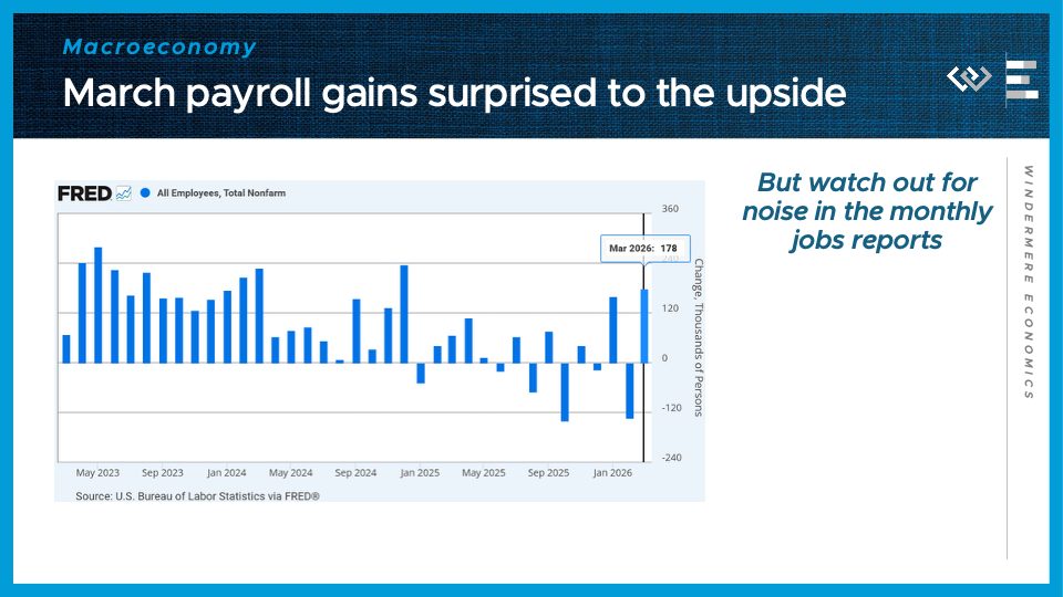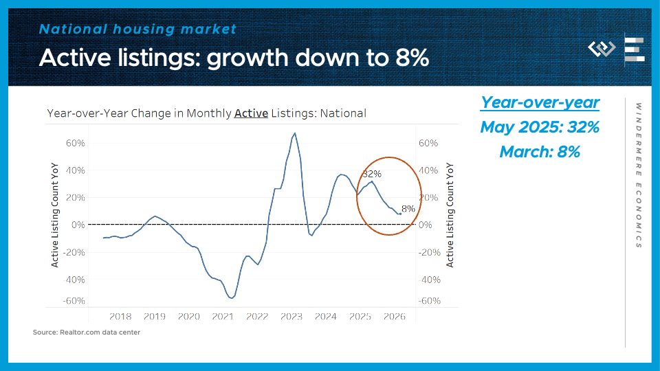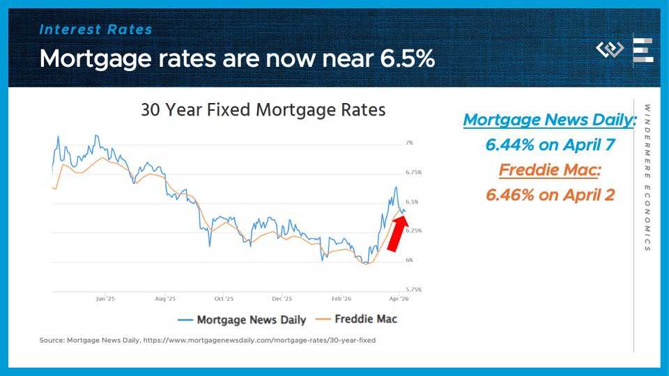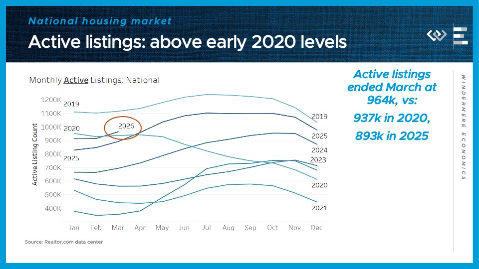 The third number to know this month: 6 and a half percent. That’s the ballpark of where 30-year mortgage rates are now bouncing around, after jumping almost half a point from multi-year lows they reached just back in late February. The combination of higher inflation and tighter monetary policy triggered by the war in Iran has set interest rates back up to where they were last summer, and frankly into the range of where they stood last spring. This is undermining homebuyer demand in what should be the busy spring buying season, leading instead to more balanced conditions in the housing market.