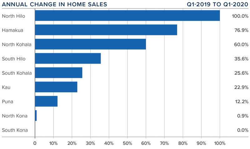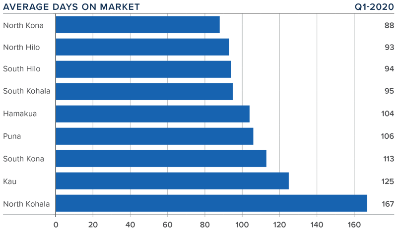 • In the first quarter, it took an average of 109 days to sell a home. Homes sold fastest in North Kona and North Hilo and slowest in North Kohala.
