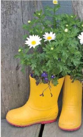Upcycling is the art of taking something that could be seen as garbage and turning into something useful. Do you have a basement full of items that you're thinking about throwing away? Next time you want to run to the store to buy something new, head down to your stash and envision if there’s anything there that you could use instead, like this pair of rubber boots that became a flower pot.