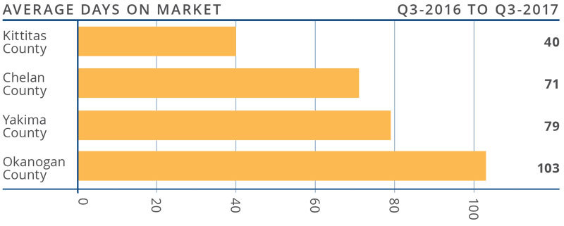 - Homes sold the fastest in Kittitas County, where it took an average of 40 days to sell a home. The greatest drop in the time it took to sell a home was in Chelan County, where it took 35 fewer days than in the third quarter of last year.