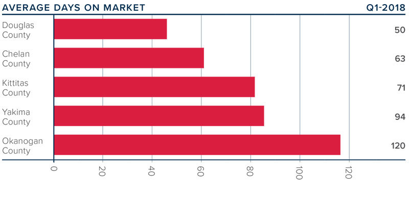 - All the markets contained in this report, other than Chelan, saw days-on-market drop from the same quarter in 2017.