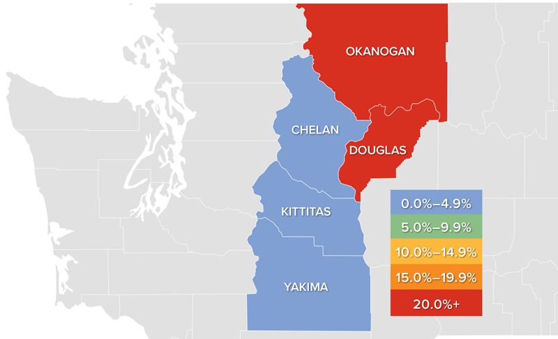 - Chelan, Yakima, and Kittitas Counties saw relatively modest price contractions. I believe this is due to seasonality, and it is not a cause for concern at the present time.