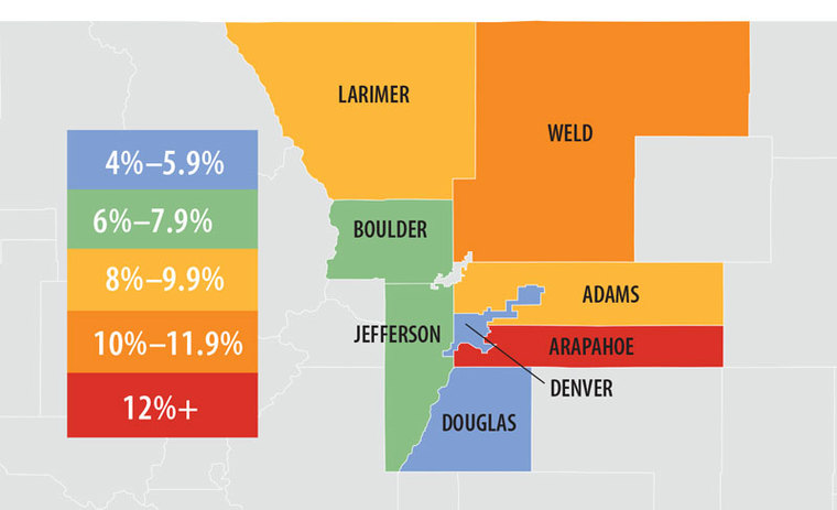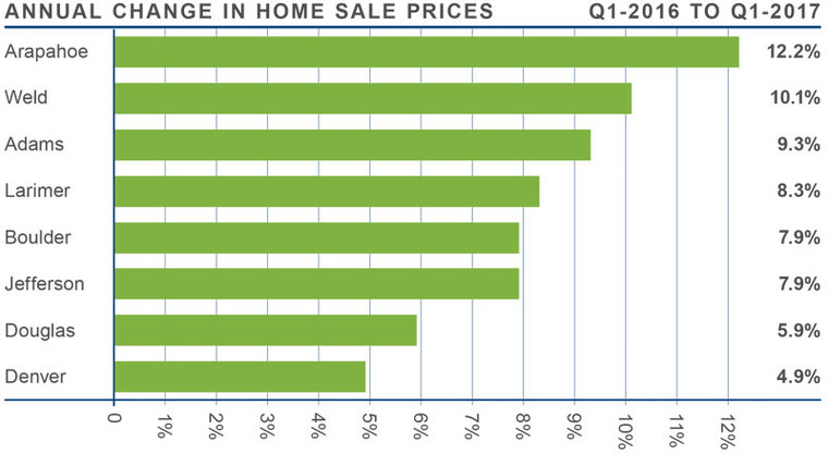 - Appreciation was strongest in Arapahoe and Weld Counties, where prices rose by 12.2% and 10.1% respectively.