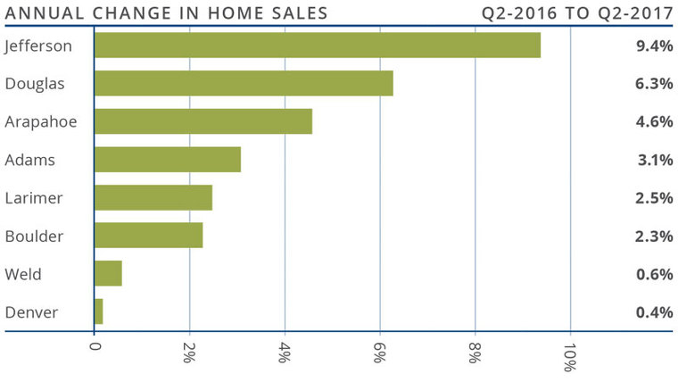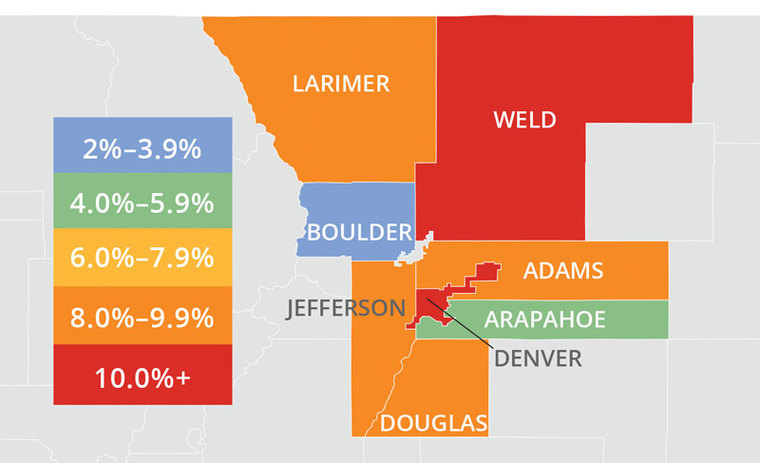 - Appreciation was strongest in Denver and Weld Counties, where prices rose by 12.4% and 10.6% respectively.