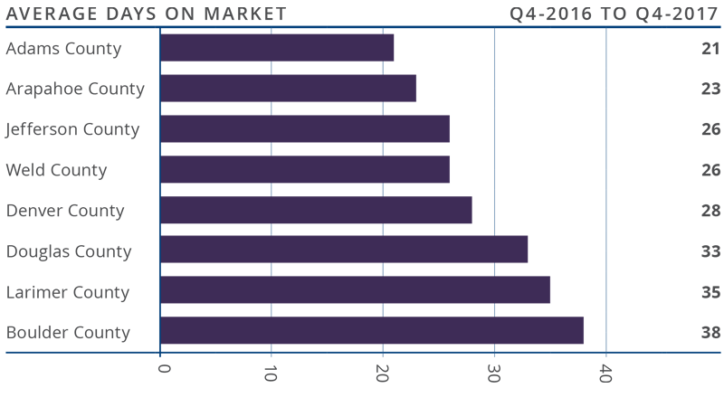 - Homes in all but three counties contained in this report took less than a month to sell. Adams County continues to stand out, where it took an average of just 21 days for homes to sell.