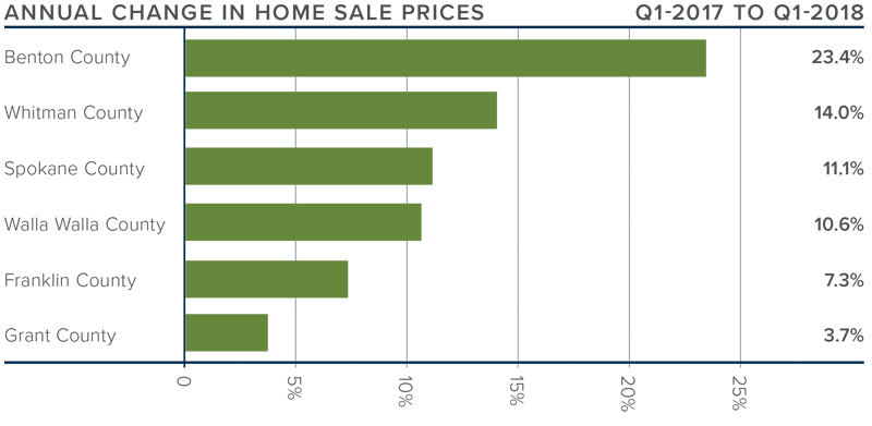 - In aggregate, home sales throughout Eastern Washington continue to outperform historic averages, with sales rising 18.4% compared to the same quarter of 2017.