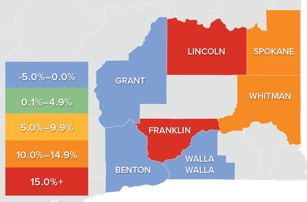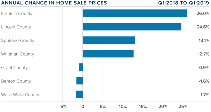 - Year-over-year, home sales fell in all counties, with the greatest drops in Whitman and Walla Walla counties.