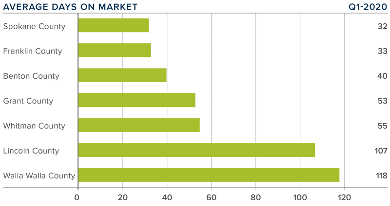 - The regional market was split: it took longer to sell homes in Lincoln, Franklin, and Walla Walla counties, but days-on-market dropped in the balance of the region.