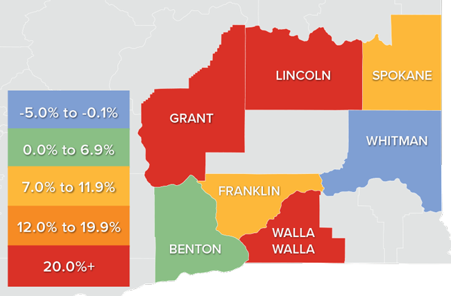 - Prices rose everywhere but Whitman County, and all but two counties showed double-digit gains.
