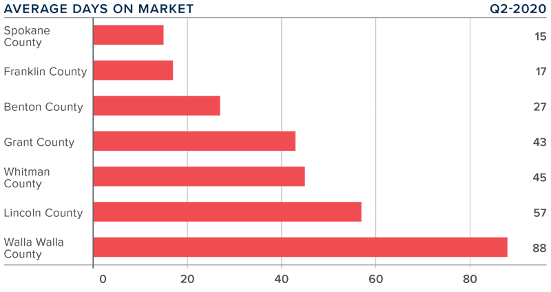 - The average time it took to sell a home in Eastern Washington in the second quarter of 2020 was 42 days.