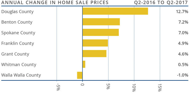 Year-over-year, the average home price in the region rose by 6.2% to $242,059. Price growth has been tapering across the region, but several counties are still seeing appreciation well above the average rate.- Walla Walla County was the only market where prices were lower when compared to the second quarter of 2016. However, the drop was very modest and, given the fact that it is a relatively small market, I am not concerned.