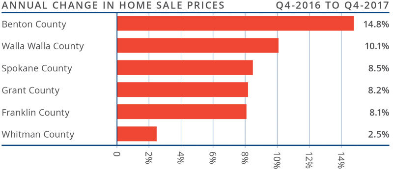 • All of the counties in this report saw prices rise compared to the final quarter of 2016. Benton County led the way again with an increase of 14.8%.