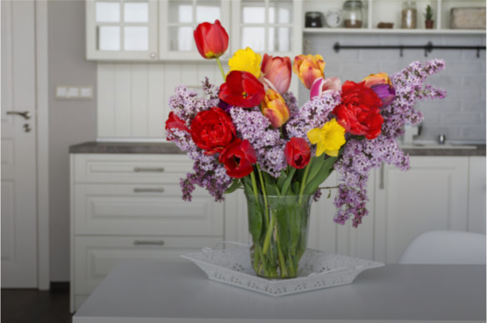 • Add color to your table. Treat yourself to some fresh flowers to add cheer to your kitchen table while waiting for spring blooms to make their first appearance.