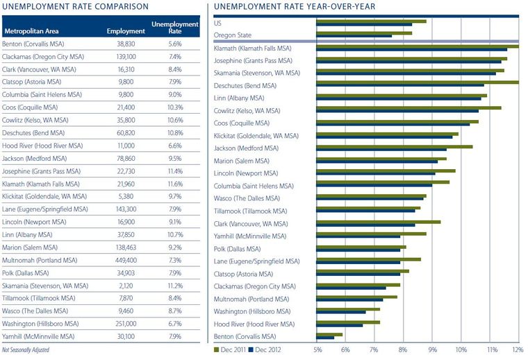 Private industry has, so far, been doing its best to answer the call to arms, but industry looks to the government for some kind of assurances that we will not fall back into recession. The current issues revolving around fiscal cliffs, debt ceilings, and sequesters are not giving businesses the assurance that they so badly need. Until the outlook on a national basis is clearer, we cannot expect private firms to increase their hiring and, as such, improvement in the employment situation in Oregon, and in most of the rest of the country, is likely to be lackluster.