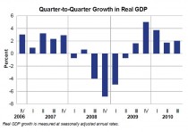 Today's number showed that the economy expanded in the third quarter by 2.0 percent. The pace improved slightly from the second quarter (+1.7% annualized), but it remained below the first quarter (+3.7%).