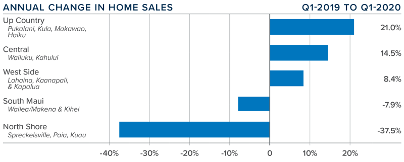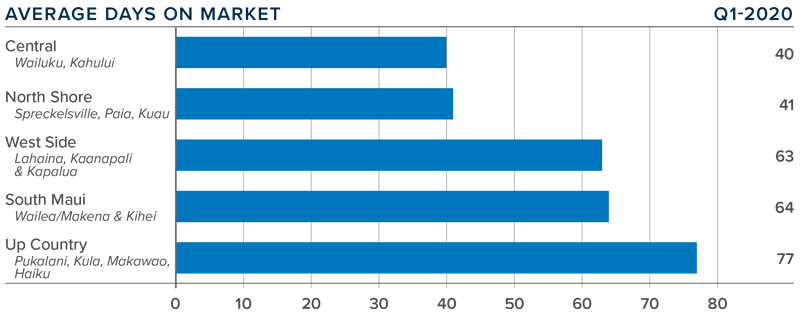 - The average number of days it took to sell a home on Maui dropped 17 days compared to the first quarter of 2019.