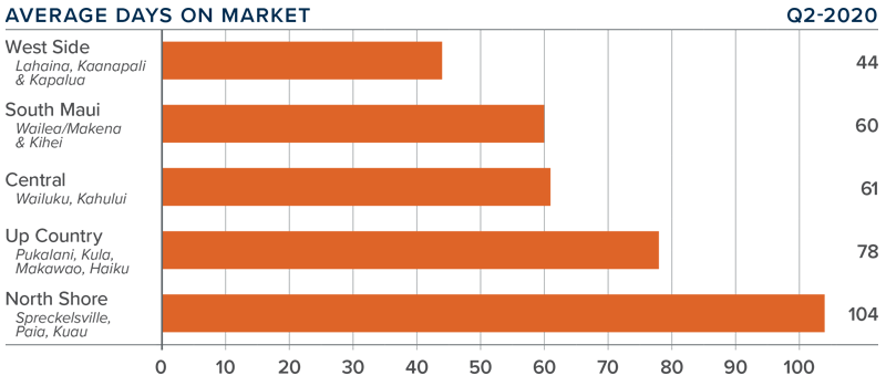 ❱ The average number of days it took to sell a home on Maui rose 12 days compared to the second quarter of 2019.