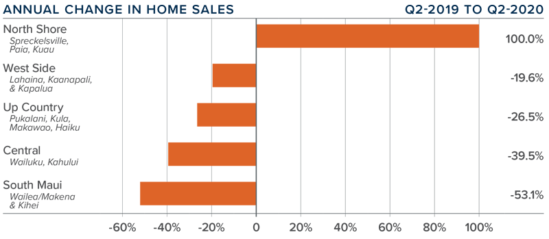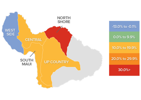 ❱ Sales did rise in the North Shore area, but the increase only amounted to 2 additional sales. The largest drop in sales was in South Maui, where 136 fewer transactions closed compared to a year ago.