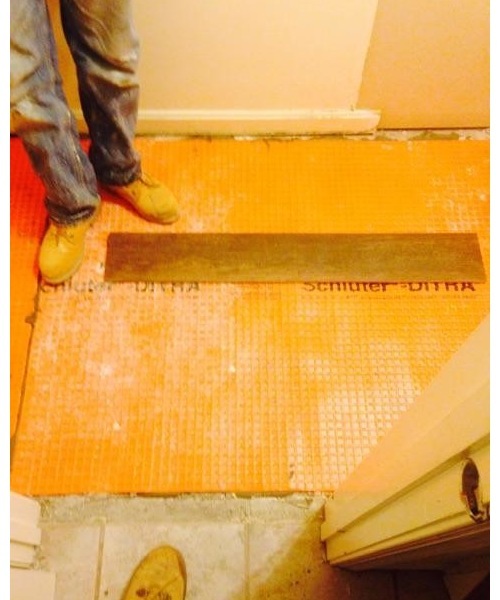 Once the subfloor is ready, the next basic step is installing cement backer board or an uncoupling membrane. Both materials serve as the underlayer to the tile floor and help prevent cracks.