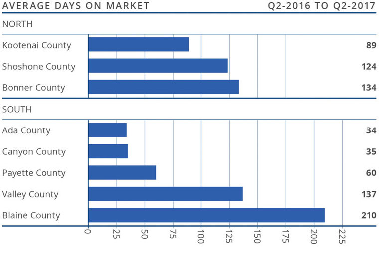 - Homes in two of three Northern Idaho counties took less time to sell than they did in the same quarter of 2016. All of the Southern counties saw a drop in the time it took a home to sell.