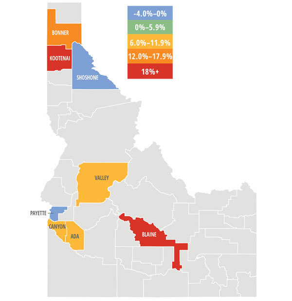 - Year-over-year sales dropped in two of three Northern Idaho counties in this report, but rose in all but one county in the Southern Idaho market areas.