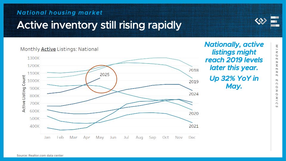 But that doesn’t mean no one is trying to sell. The month of May ended with over a million active listings on the market according to Realtor dot com’s data, bringing the market very close to pre-pandemic inventory norms. In fact, the National Association of Realtors reported that when they measure inventory in terms of Months of Supply, it actually exceeds its May 2019 level.