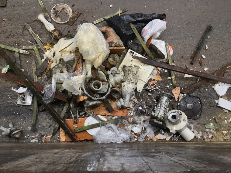 Nothing is free. It cost $120 to get rid of the 2,000lbs of house debris and lawn gnomes. Plaster is heavy. Gnomes are heavier.