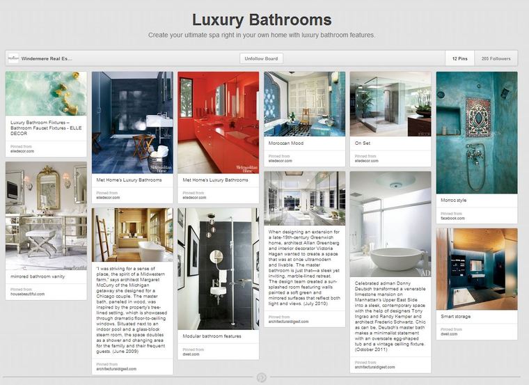 Over the past year, we have really enjoyed using Pinterest to organize some of our favorite real estate and home design resources. Because of increased demand we are expanding some of our “boards” to include more modern and luxury home features. For more than a decade, Windermere’s Premier Properties™ program has addressed the unique needs of our luxury market clientele. Our extensive network of luxury home experts have earned a reputation for providing exceptional service to discerning clients interested in buying or selling homes in some of the Western United States’ finest neighborhoods.