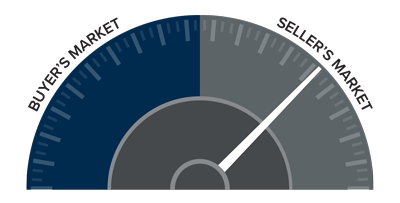 The speedometer reflects the state of the region’s housing market using housing inventory, price gains, home sales, interest rates, and larger economic factors.