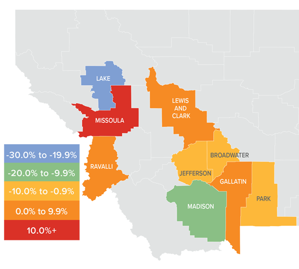 - Price appreciation was strongest in Missoula County, where home prices rose by a substantial 18.5%.