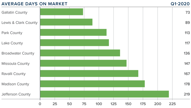 - Homes sold fastest in Gallatin County and slowest in Jefferson County. Two counties — Lake and Lewis & Clark — saw days on market drop compared to the same period a year ago.