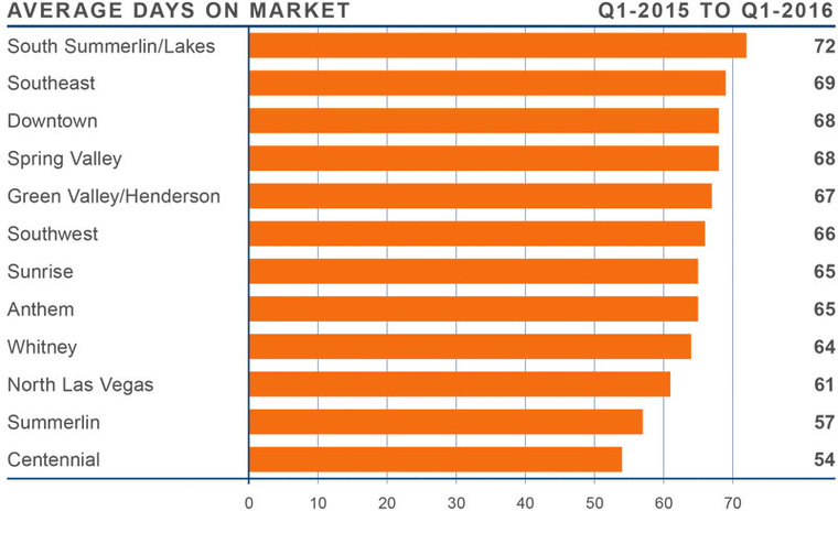 • The greatest drop in days-on-market was seen in the Southeast and Summerlin markets which both dropped by 16 days.