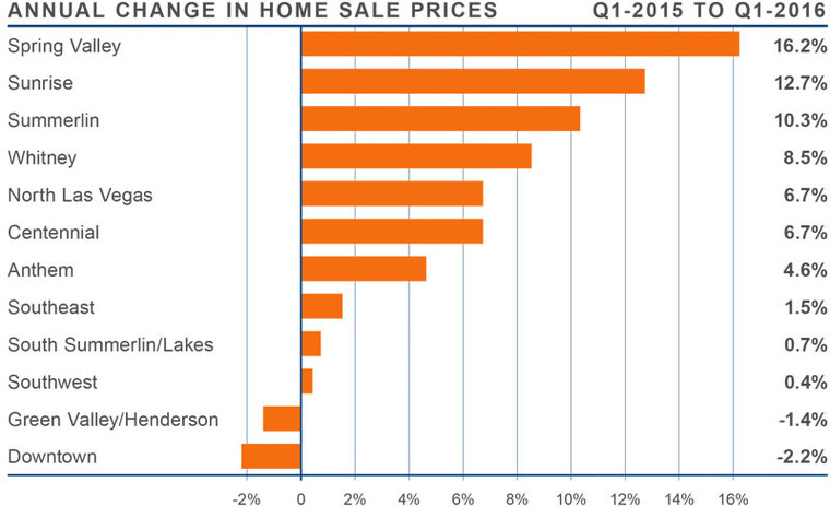 • All but two counties saw prices rise compared to the first quarter of 2015, and three sub-markets registered double-digit percentage gains.