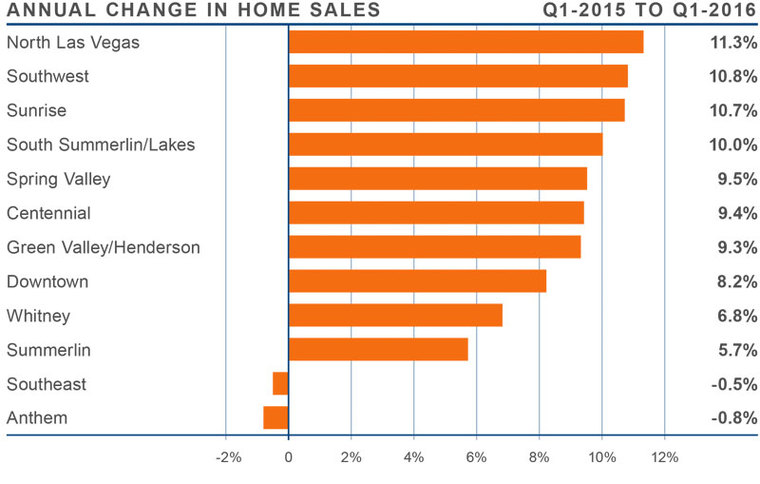 • The fastest rate of growth in sales came in the North Las Vegas sub-market which rose by 11.3% to 757 home sales.