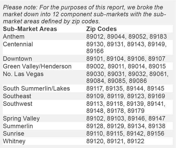 • Prices fell in the Downtown and the Green Valley/Henderson sub-markets but the declines were minimal.