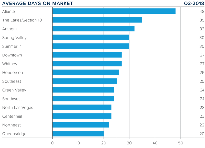 - The greatest drop in days on market was in Aliante, which fell by 38 days when compared to the same quarter in 2017.