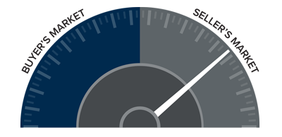 The speedometer reflects the state of the region’s real estate market using housing inventory, price gains, home sales, interest rates, and larger economic factors.