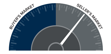 The speedometer reflects the state of the region’s real estate market using housing inventory, price gains, home sales, interest rates, and larger economic factors.