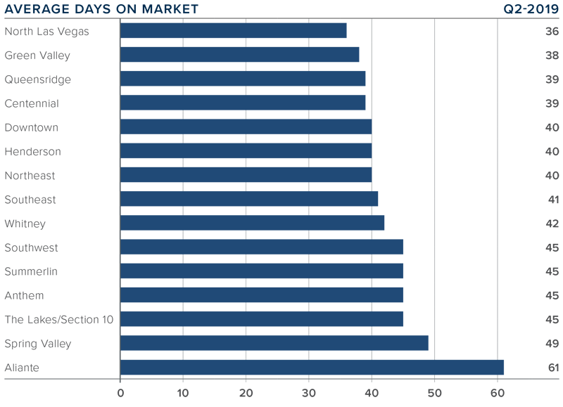 - All market areas rose when compared to the second quarter of 2018. The greatest increase in market time was in Southwest Las Vegas, which rose by 21 days.