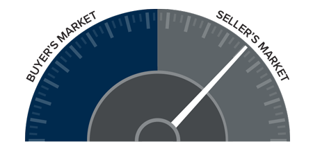 The speedometer reflects the state of the region’s real estate market using housing inventory, price gains, home sales, interest rates, and larger economic factors.