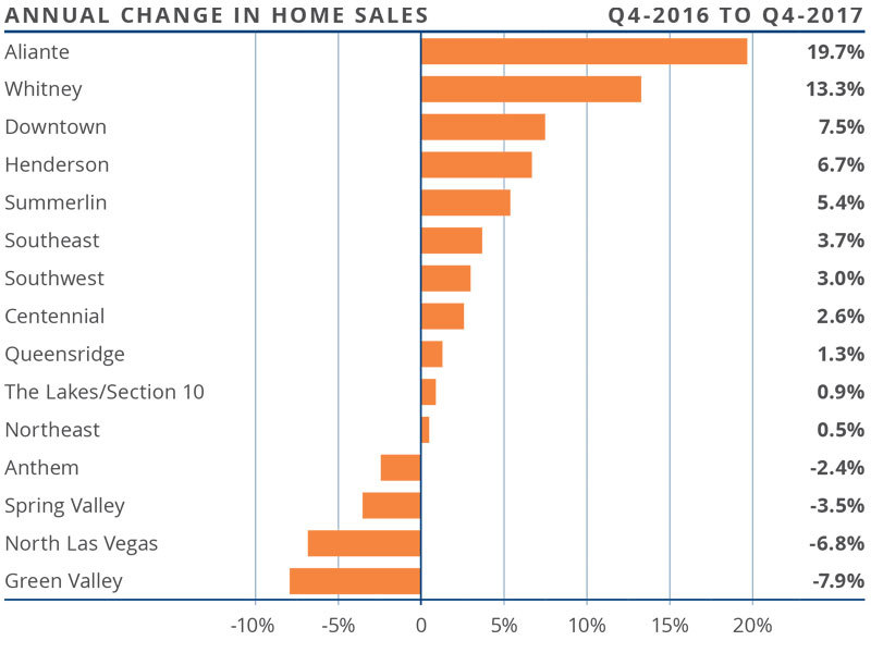 • The length of time it took to sell a home dropped in all Las Vegas sub-markets compared to a year ago.