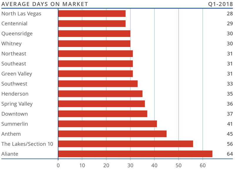 - The greatest drop in days-on-market was in the Whitney sub-market, which fell by 18 days when compared to the same quarter in 2017. Homes in this area sold in 30 days on average.