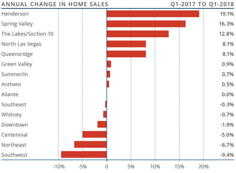 - Sales rose substantially in the Henderson and Spring Valley sub-markets, where transactions were up by 19.1% and 16.3%, respectively. Several other sub-markets saw positive sales growth, but total closings were down by 2.0% compared to the fourth quarter of 2017.