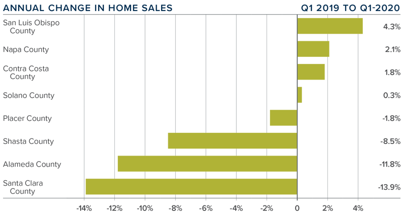 • As this is the first report prepared for counties within Northern California, my ability to comment is limited. That said, it will be interesting to see how the market further reacts to COVID-19 and we look forward to offering analysis and perspective when we get second quarter data.