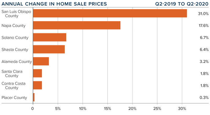 ❱ The most affordable counties in terms of average sale prices were Shasta and Solano, though price growth in these markets was very solid.