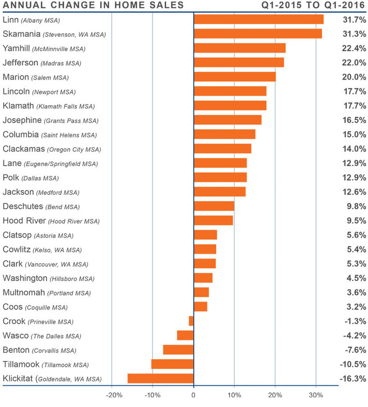 - Sales rose the fastest in smaller counties, with Linn, Skamania, Yamhill, Jefferson and Marion Counties leading the way.