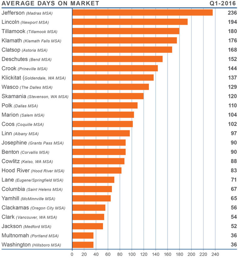 - The fastest sales pace was seen in Washington and Multnomah Counties, which registered at a little over one month.