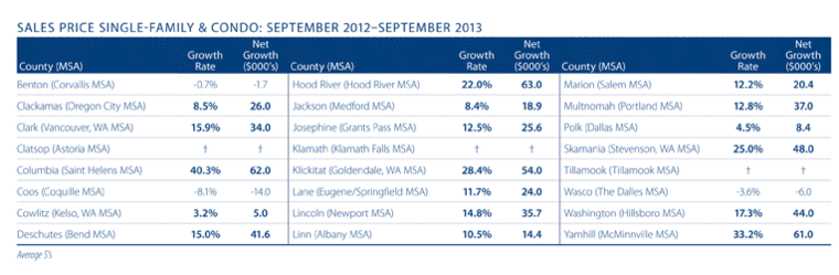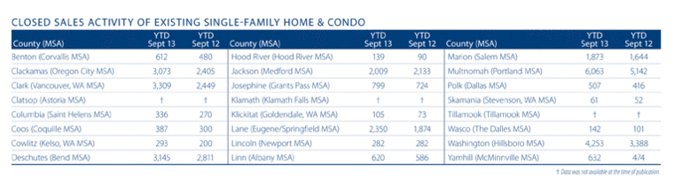 There was just one county that saw home sales drop when compared to 2012, and this was in the Medford market which contracted by six percent. Home sales in Lincoln County matched sales from a year ago.